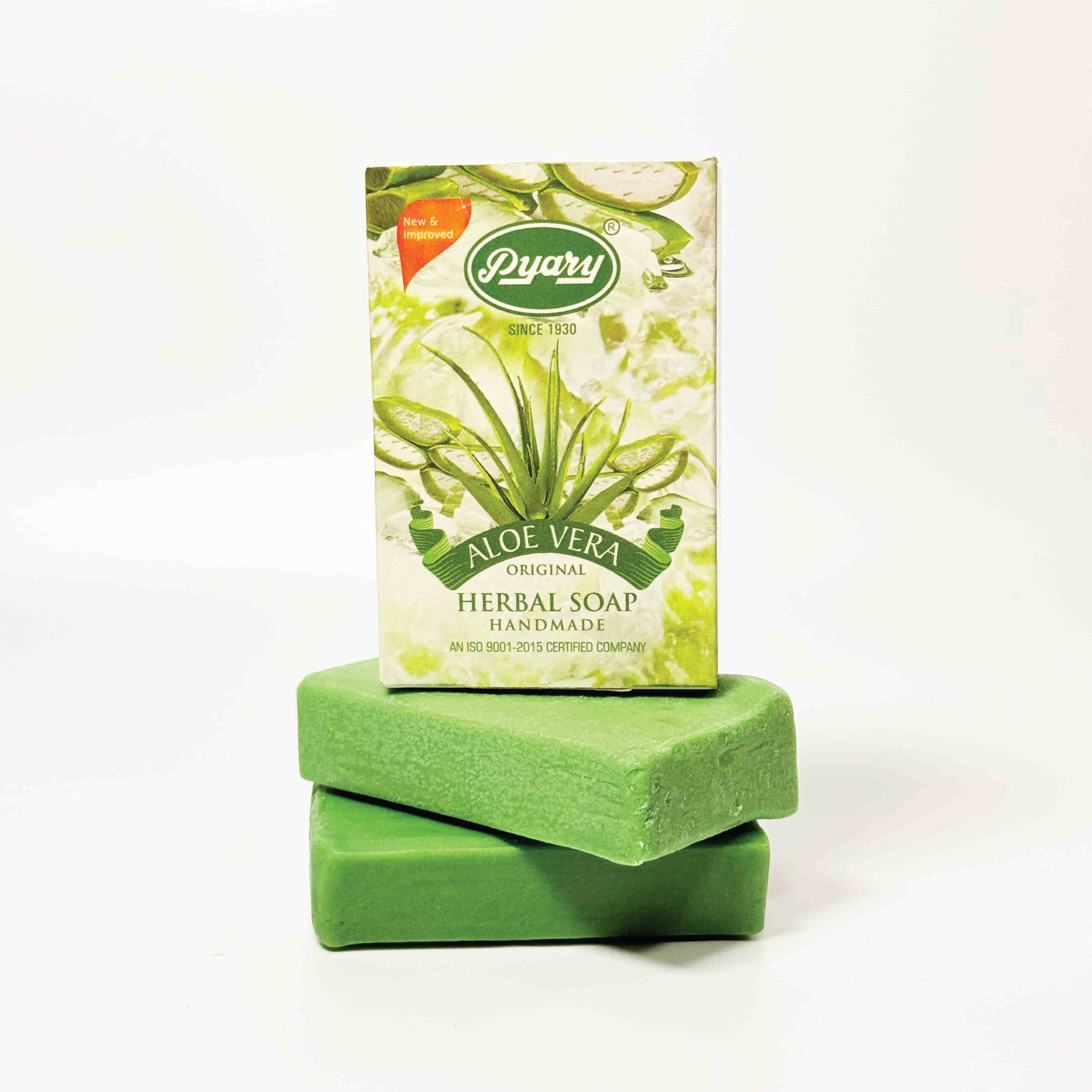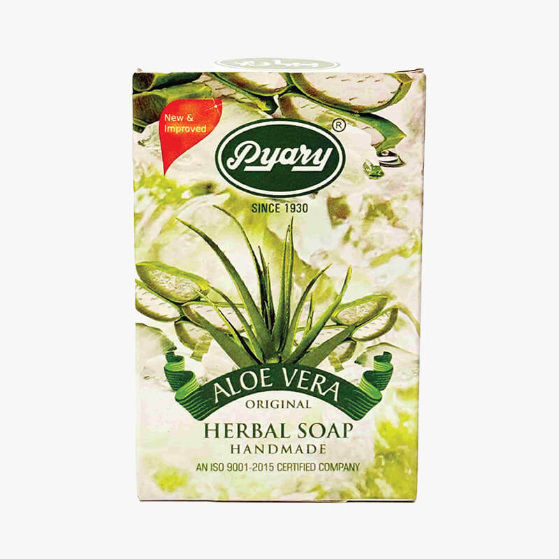Pyary Aloe Vera Herbal Soap is made from pure coconut oil, herbal extracts such as Aloe Vera, and natural aromatic essential oils. It retains all the glycerin formed during the process, making it unique for containing the active ingredients of Aloe Vera—highly valued in treating various skin disorders. Aloe Vera has long been recognized for its exceptional healing and moisturizing properties. It helps repair damaged tissues by regenerating skin cells, improving skin quality, and keeping it soft and smooth. This soap lathers richly and cleanses effectively, leaving your skin feeling refreshed and hydrated. Disclaimer: We believe that everyone has different skin types. Please perform a patch test first before applying it to your whole body.
